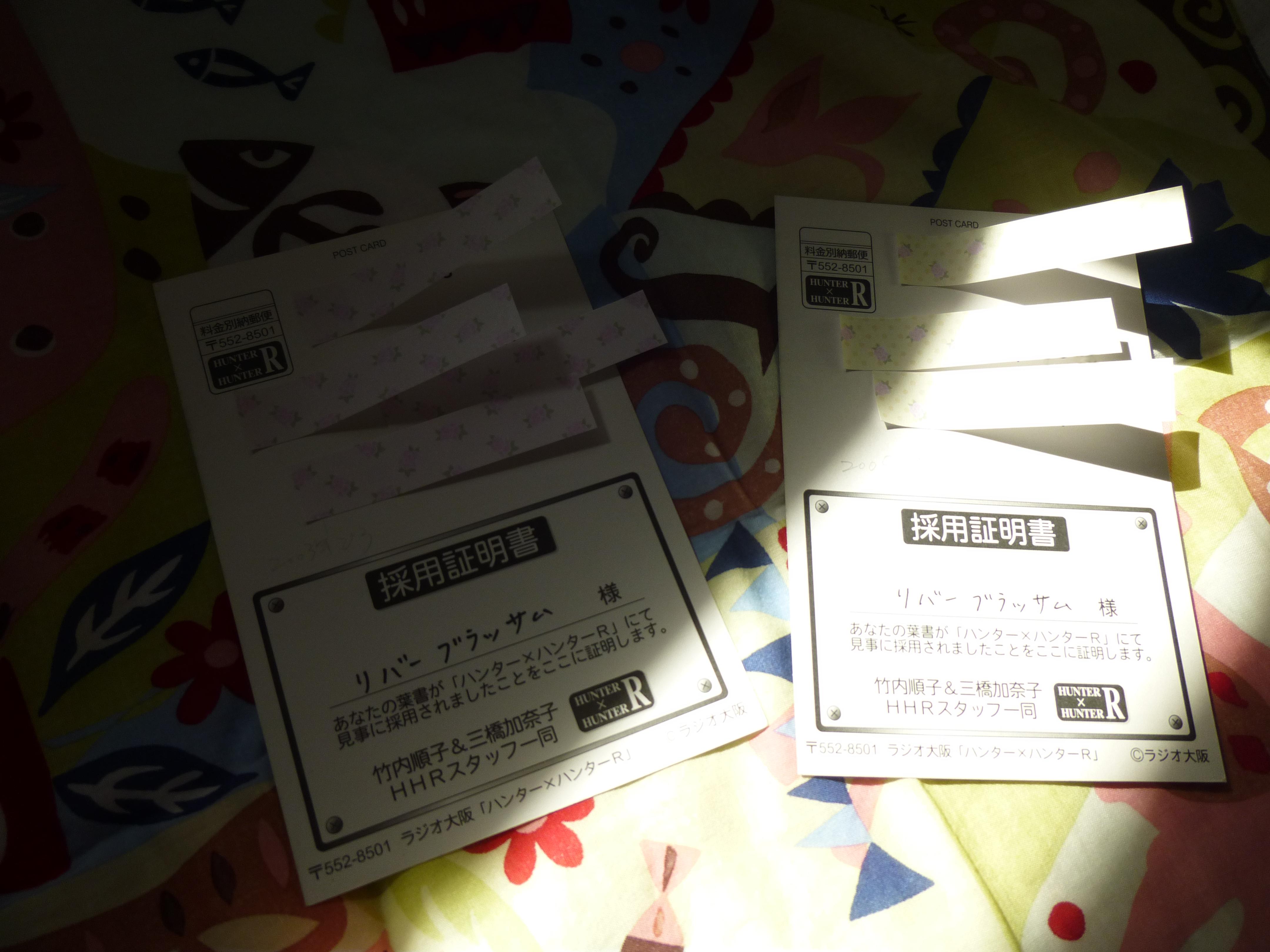 当時いただいたハンター×ハンターRの採用証明書です!
