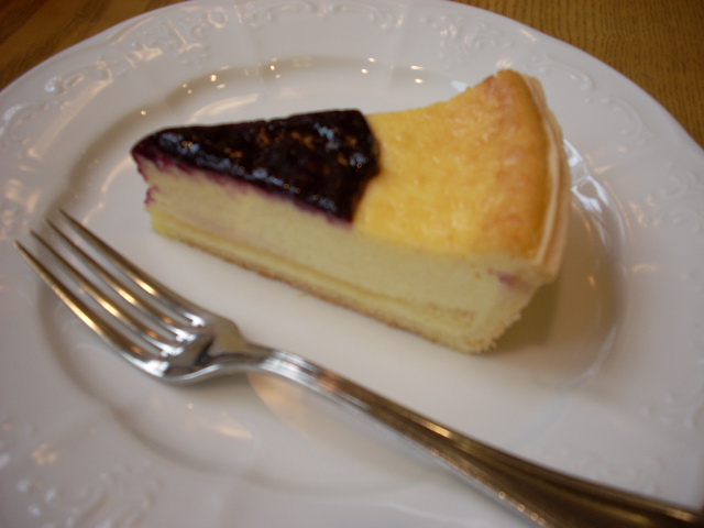 ブルーベリーソースの乗ったチーズケーキにしました