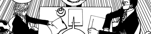 会議中レオリオとクラピカは見つめ合ってる